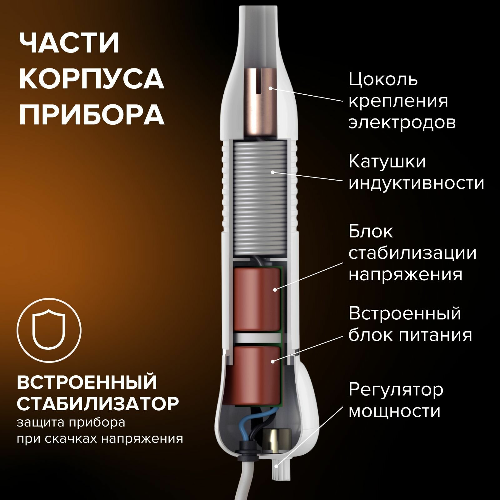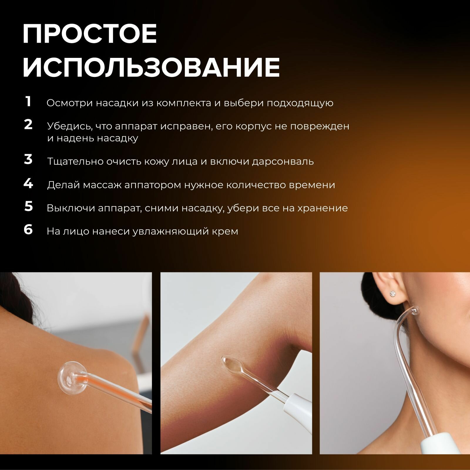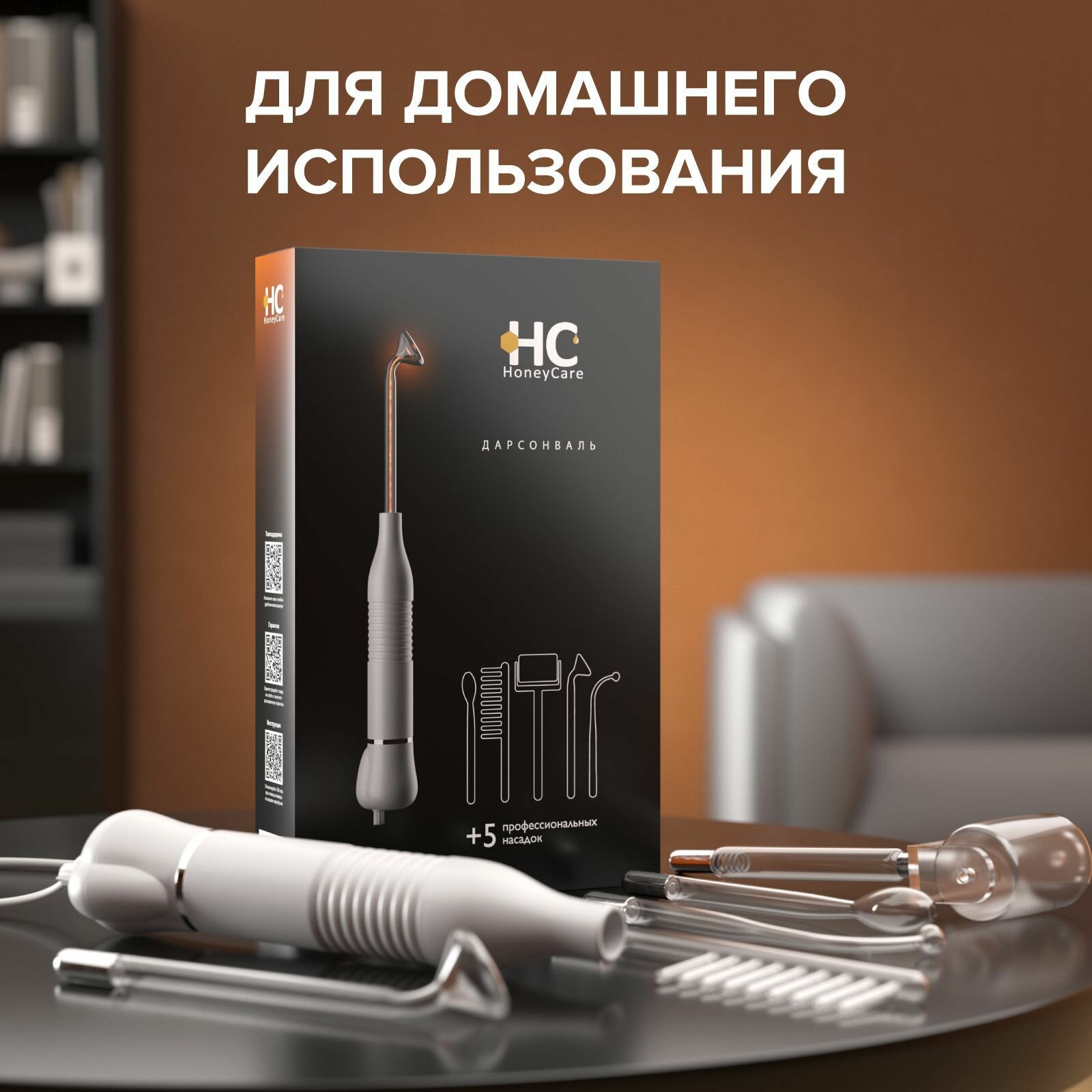 HoneyCare Косметологический аппарат Дарсонваль для волос, лица и тела. Дарсонваль аппарат с 4 насадками. интересное: