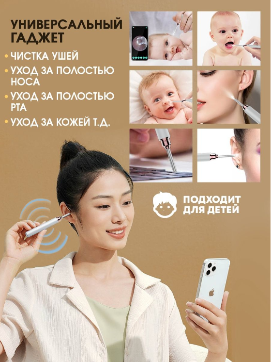 Умная ушная палочка для чистки ушей с камерой / Отоскоп / Набор для чистки ушей интересное: