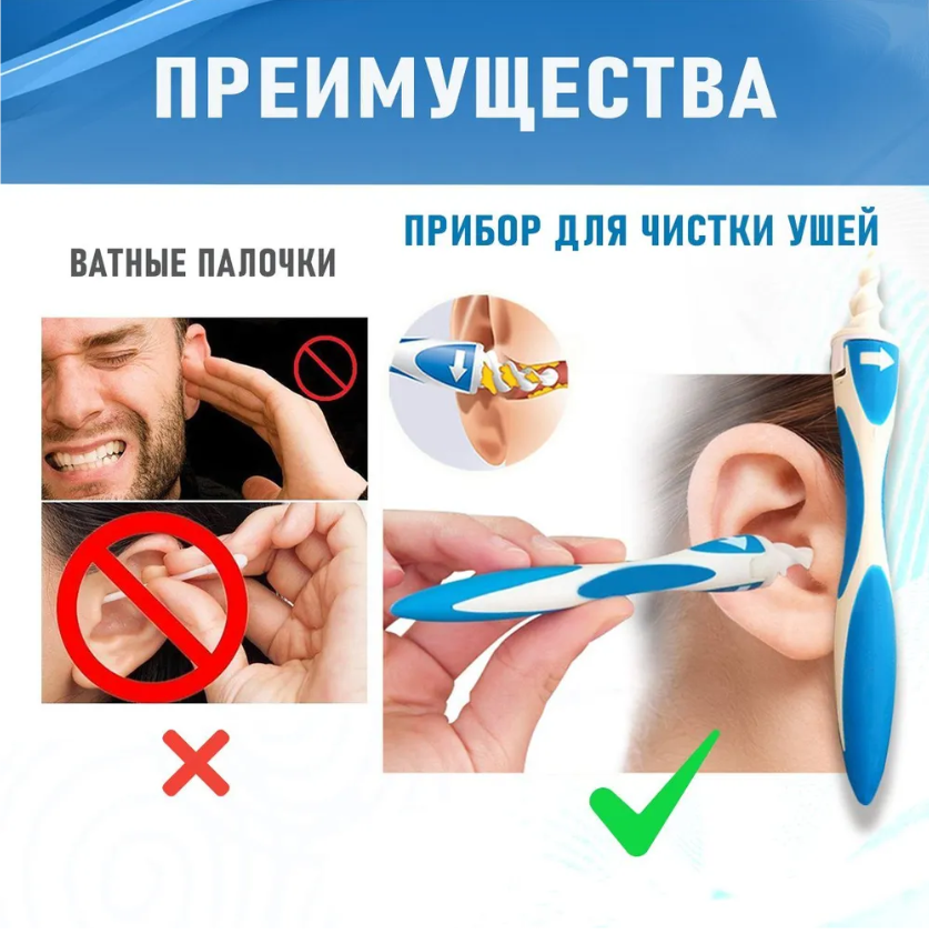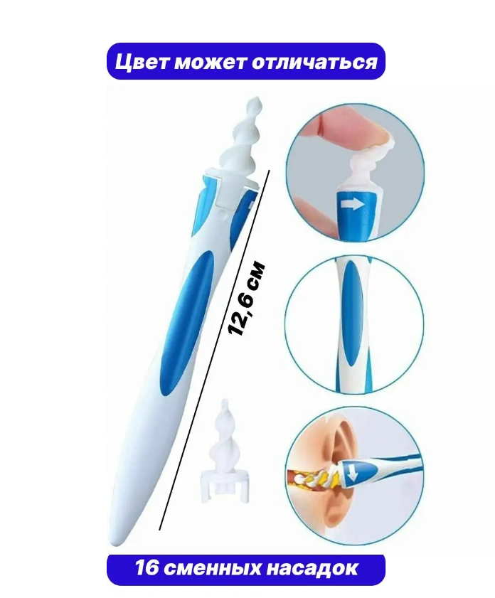 Многоразовый прибор для чистки ушей с насадками. интересное: