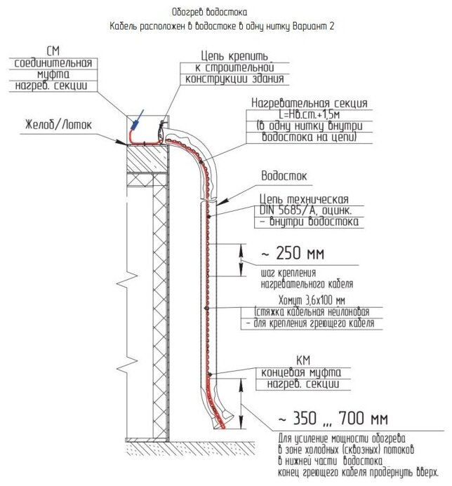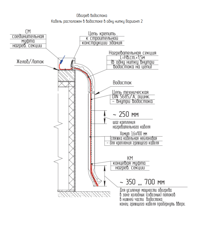 Обогрев кровли/площадок/желобов/водостоков/Система Антилед ЧТК СН-28-700, длина 25,0м