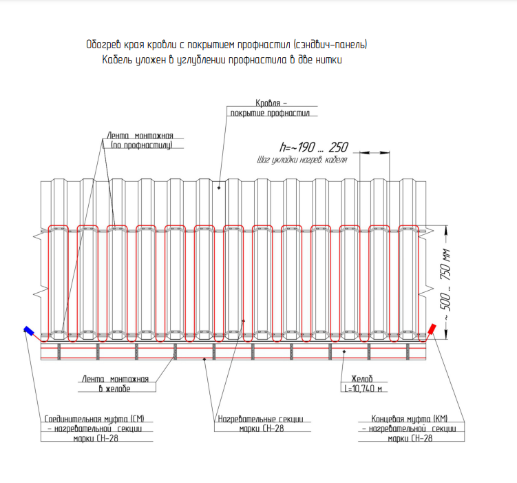 Обогрев кровли/площадок/желобов/водостоков/Система Антилед ЧТК СН-28-1848, длина 66,0м