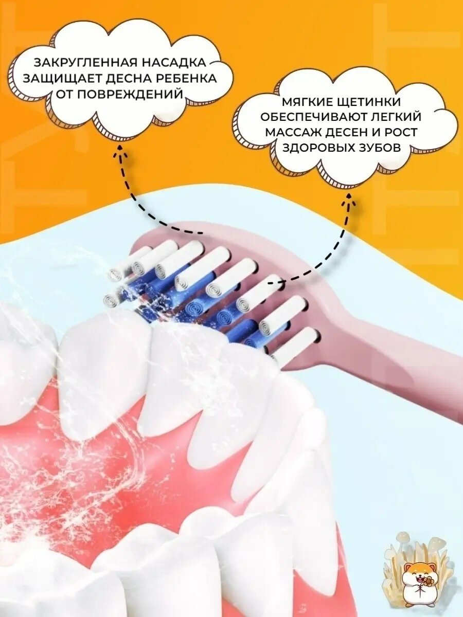 Детская Электрическая зубная щетка Beautiful Smile, для детей 3-7 лет, с 5 насадками, и батарейкой в комплекте - Хомяк