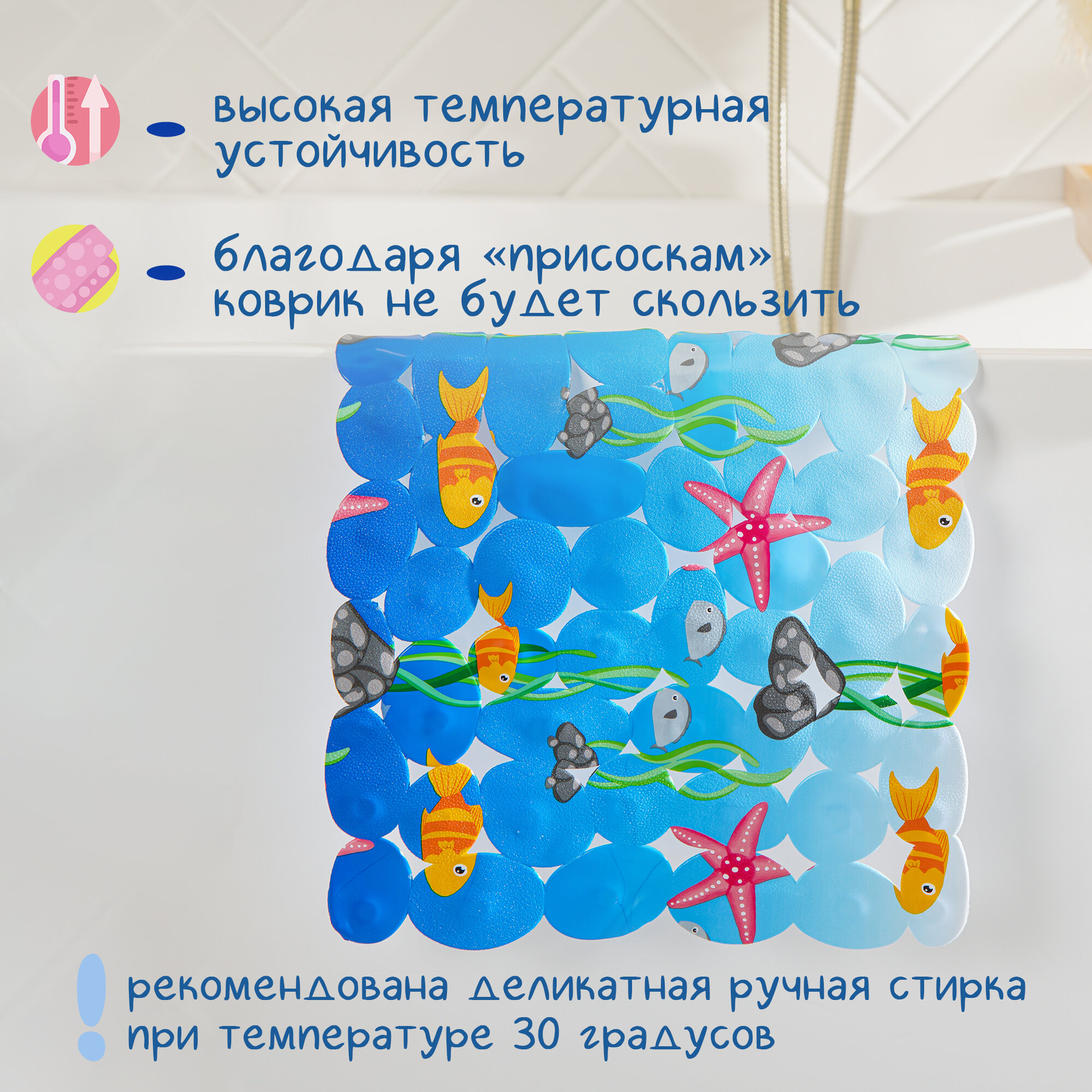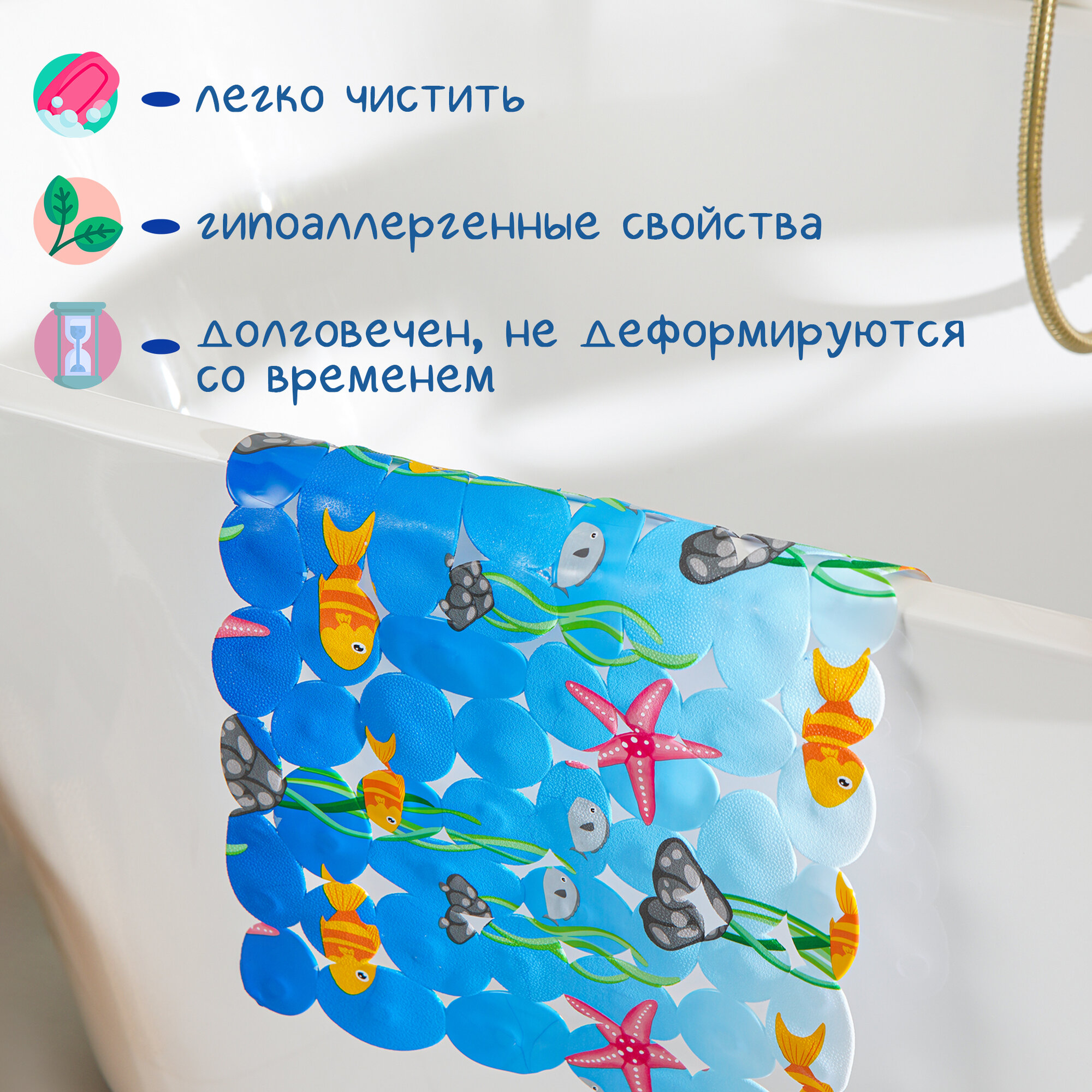 Коврик противоскользящий СПА в ванну на присосках Доляна "Лагуна"