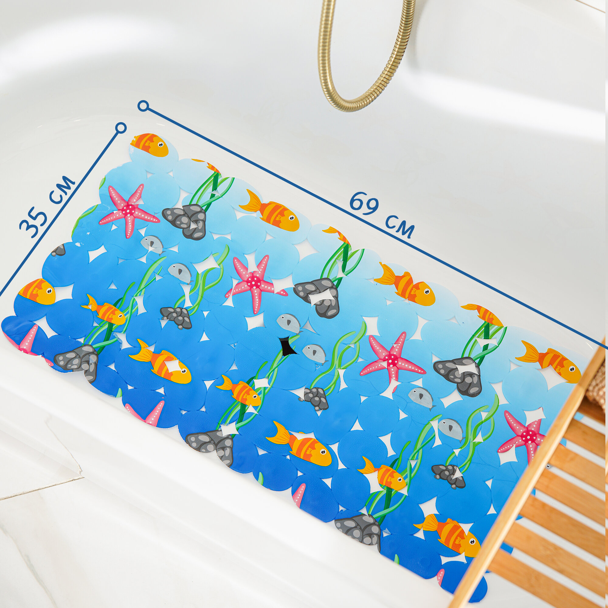 Коврик противоскользящий в ванну на присосках Доляна «Лагуна», 35×69 см