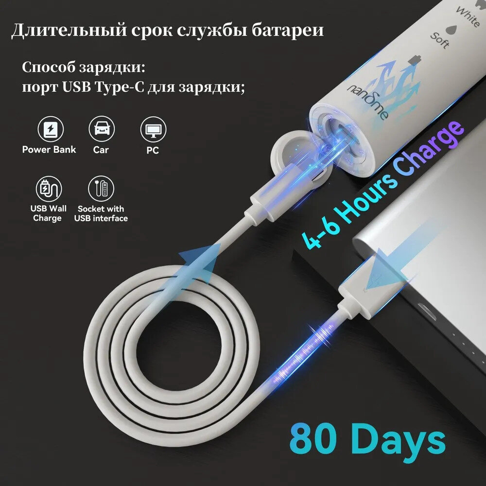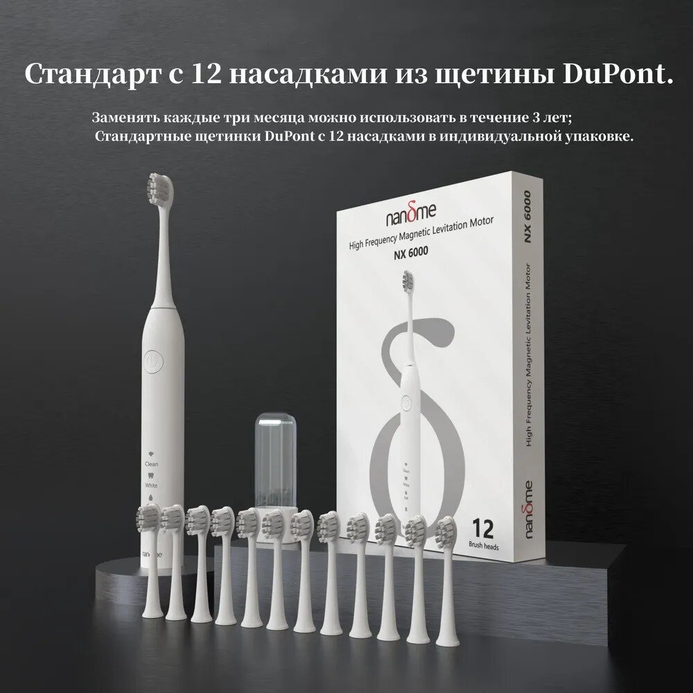 Электрическая зубная щетка nandme NX6000 и Насадки для электрической зубной щетки 12 шт. Белая интересное: