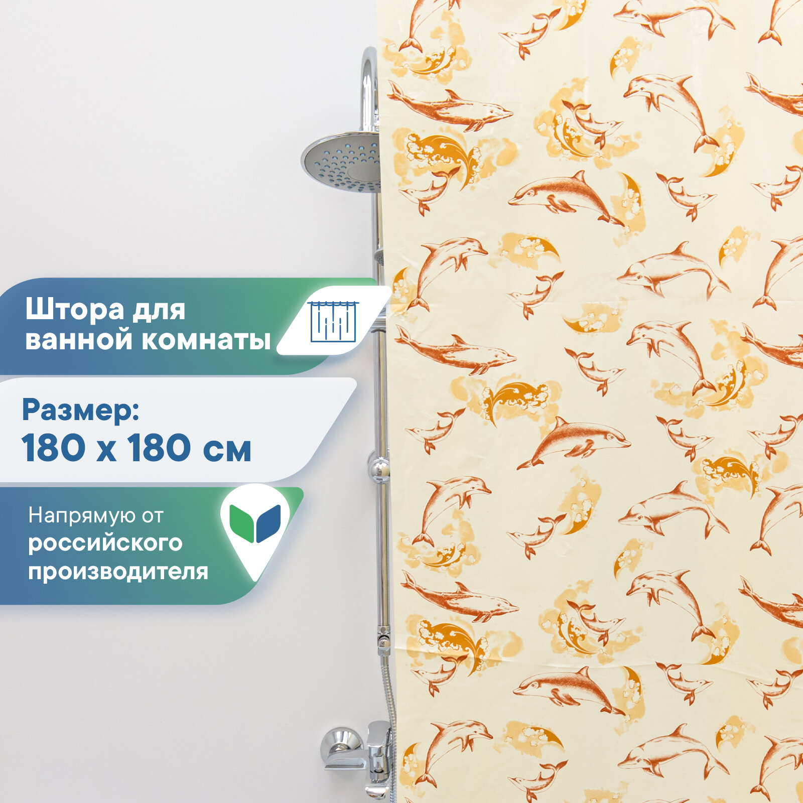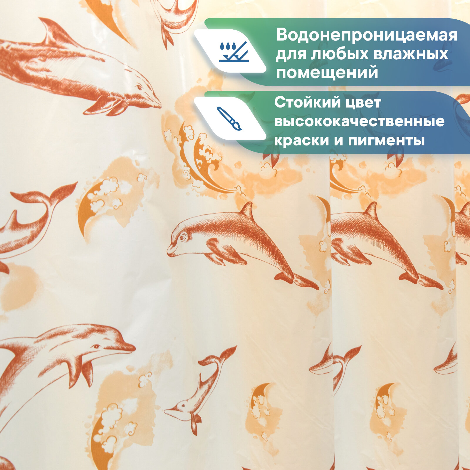 СохранитьШтора для ванной «Дельфины», 180×180 см, полиэтилен, цвет бежевый интересное: