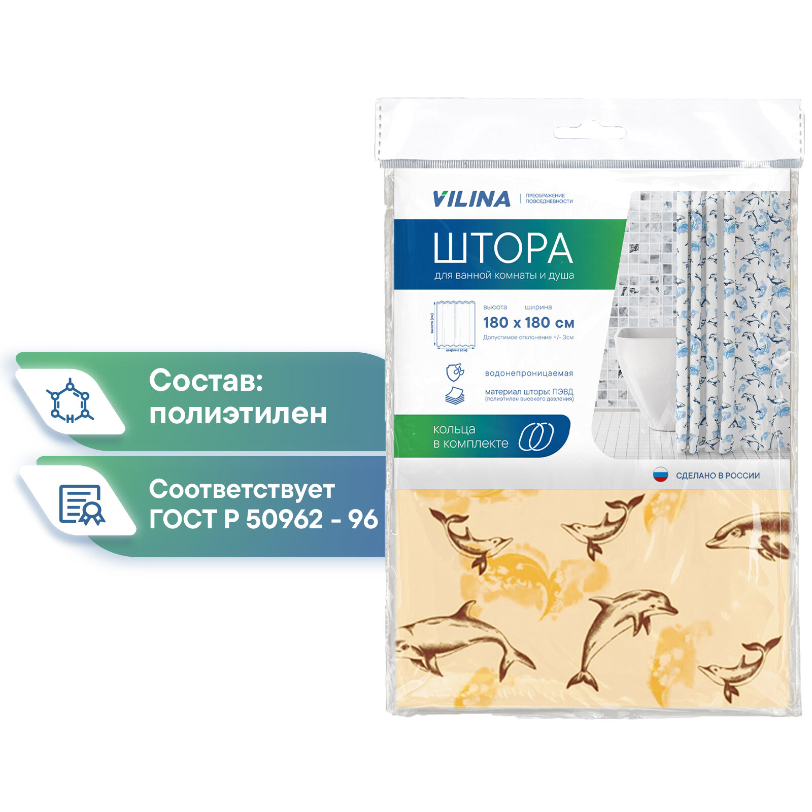 Штора для ванной комнаты и душа Вилина Дельфины, 180х180см