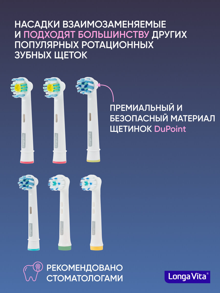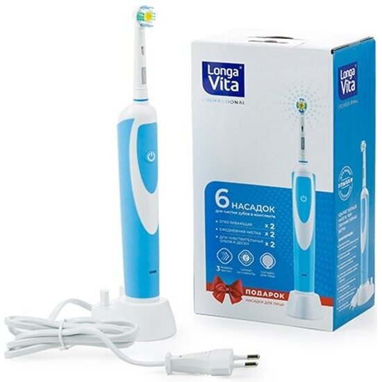 Купить Электрическая зубная щётка Longa Vita PROFESSIONAL 6 насадок, цвет: белый/голубой