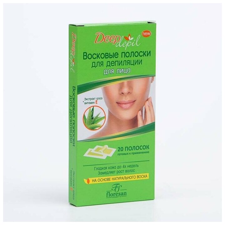 Восковые полоски для депиляции для лица FLORESAN Deep depil с алоэ вера, 20 шт