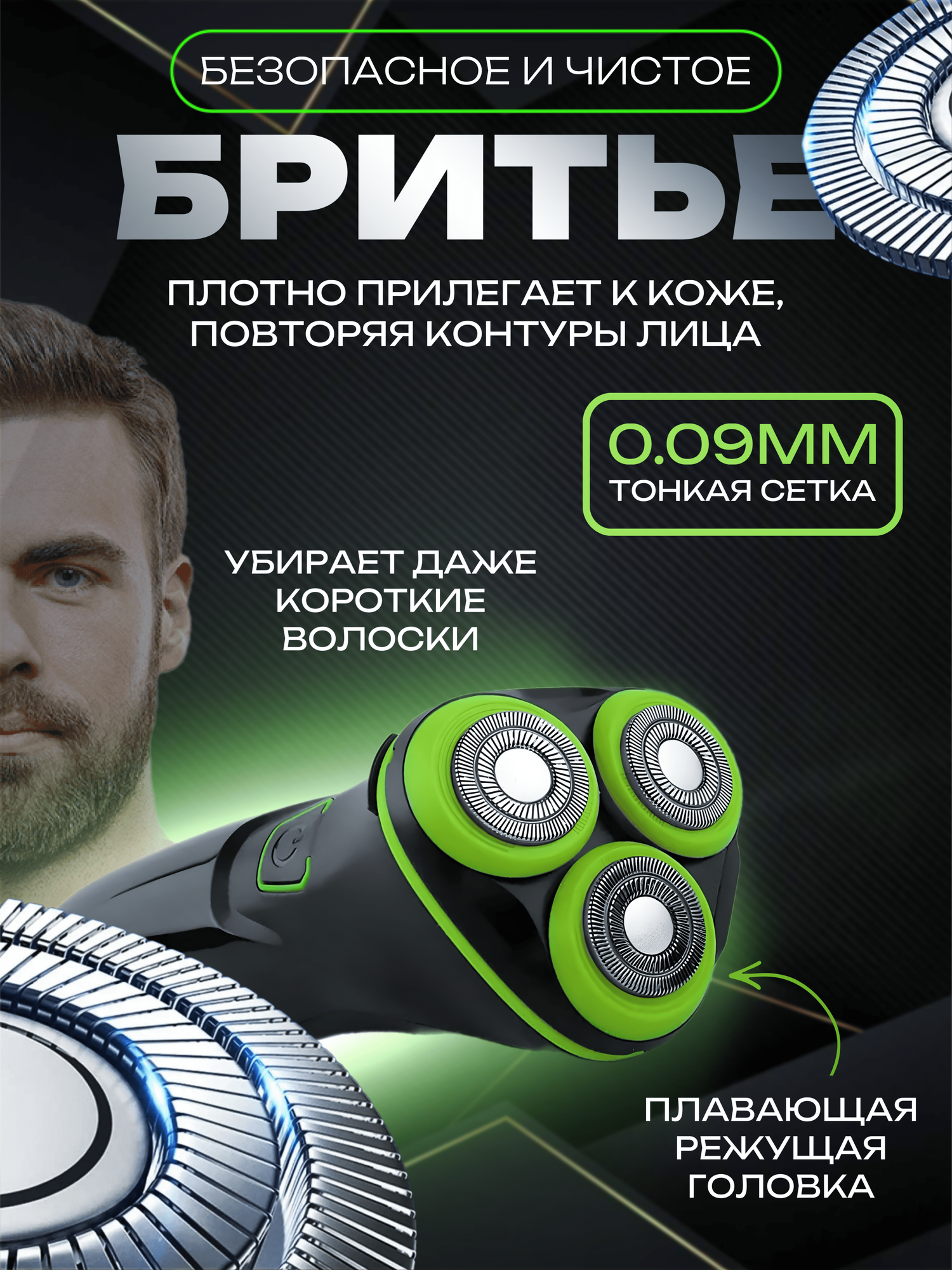 Электробритва мужская бритва электрическая для лица и бороды, зеленый интересное: