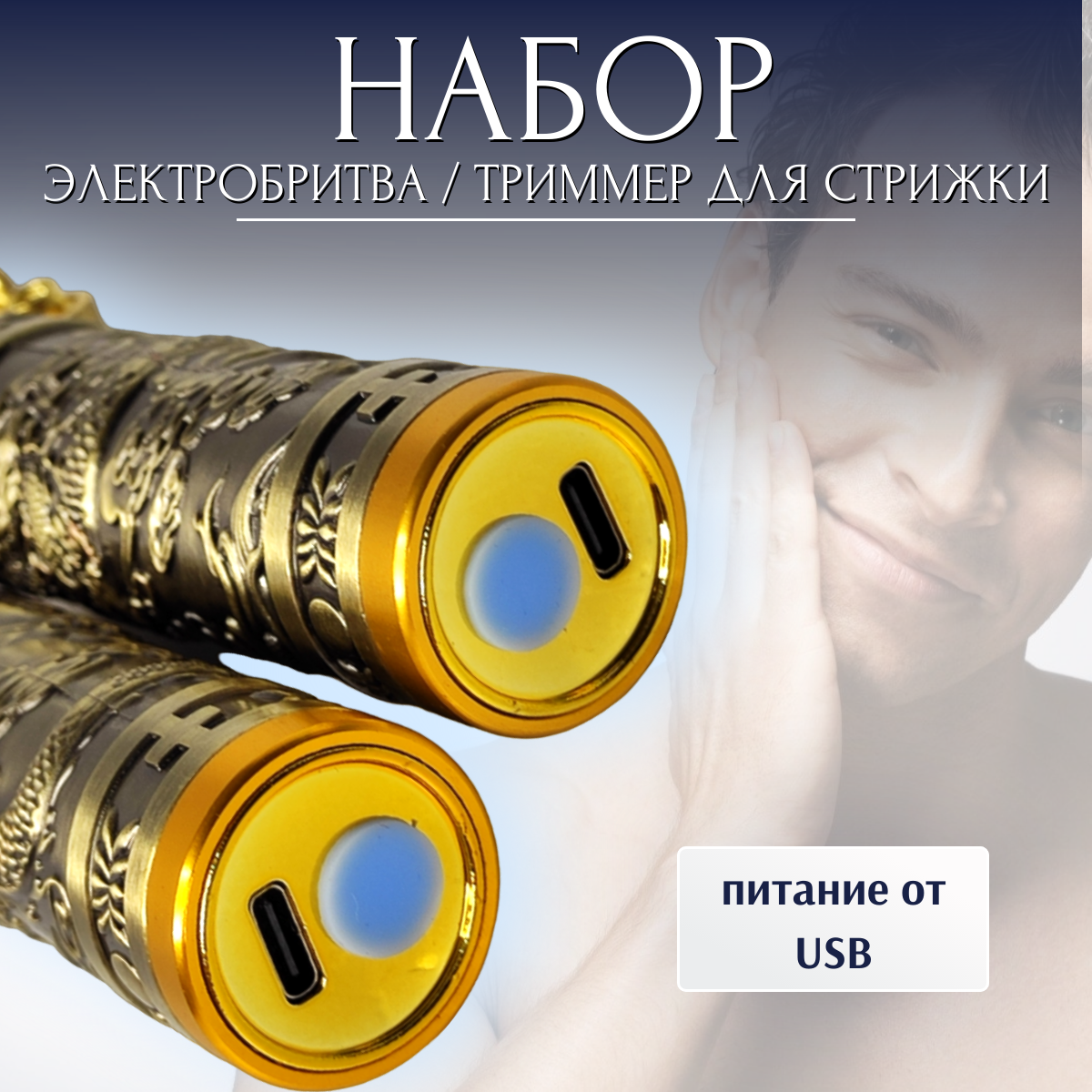 Набор Электробритва +триммер/дорожный мини шейвер. бронза интересное: