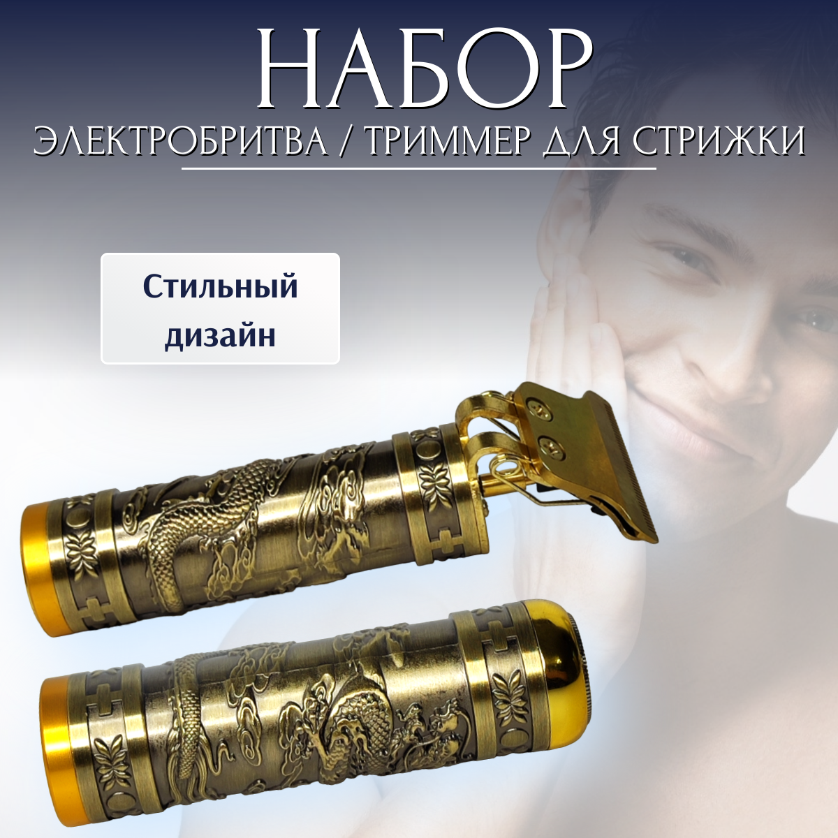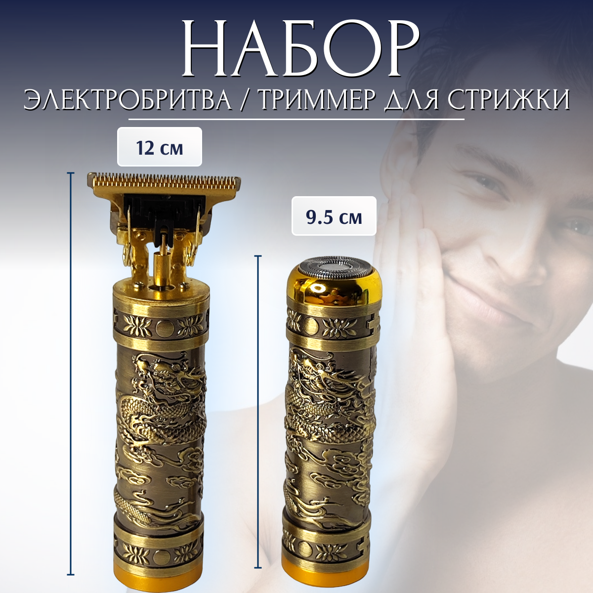 Набор Электробритва беспроводная +триммер/дорожный мини шейвер. бронза