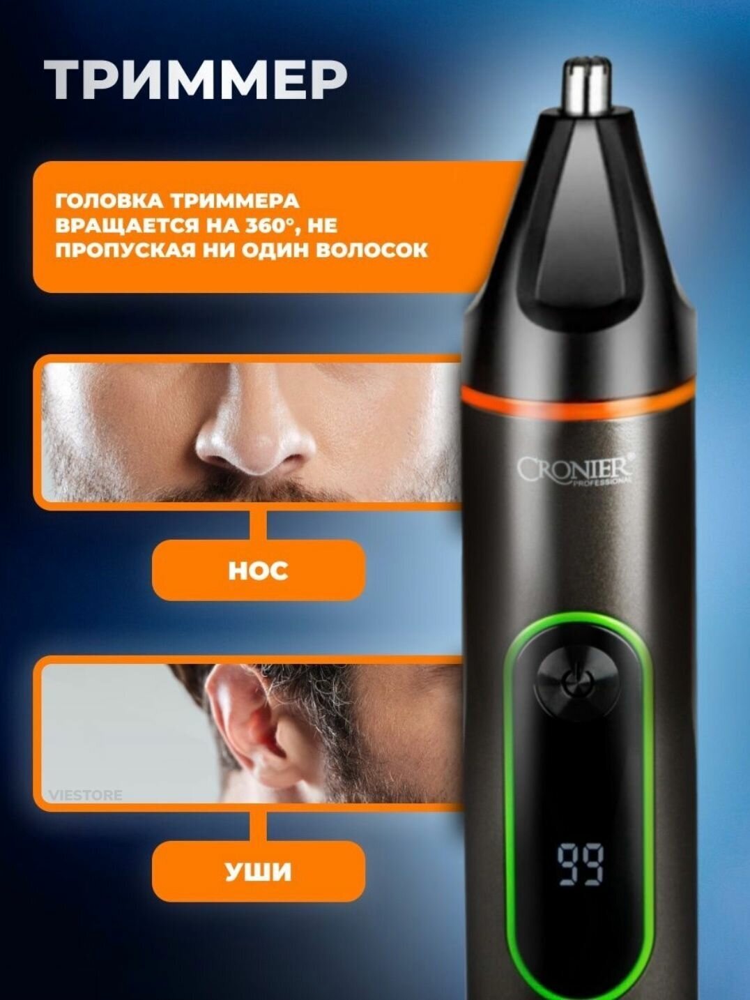 Мужская электрическая бритва/ Бритва 3в1/ VIESTORE/ Триммер для носа/ Триммер для бороды/ Бритва для сухого и влажного бритья/ Cronier интересное: