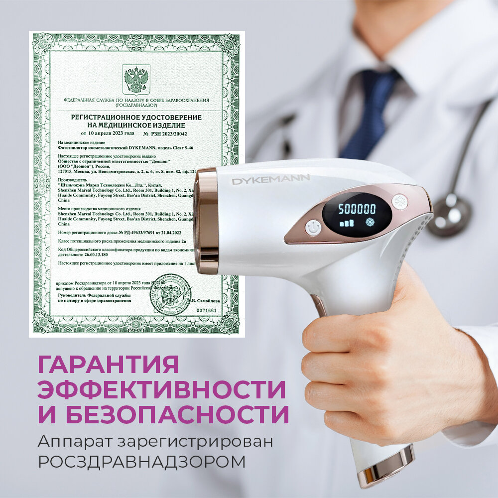 Фотоэпилятор Dykemann Clear S-46 с системой охлаждения/Подарок девушке/Фотоэпилятр для домашнего использования интересное: