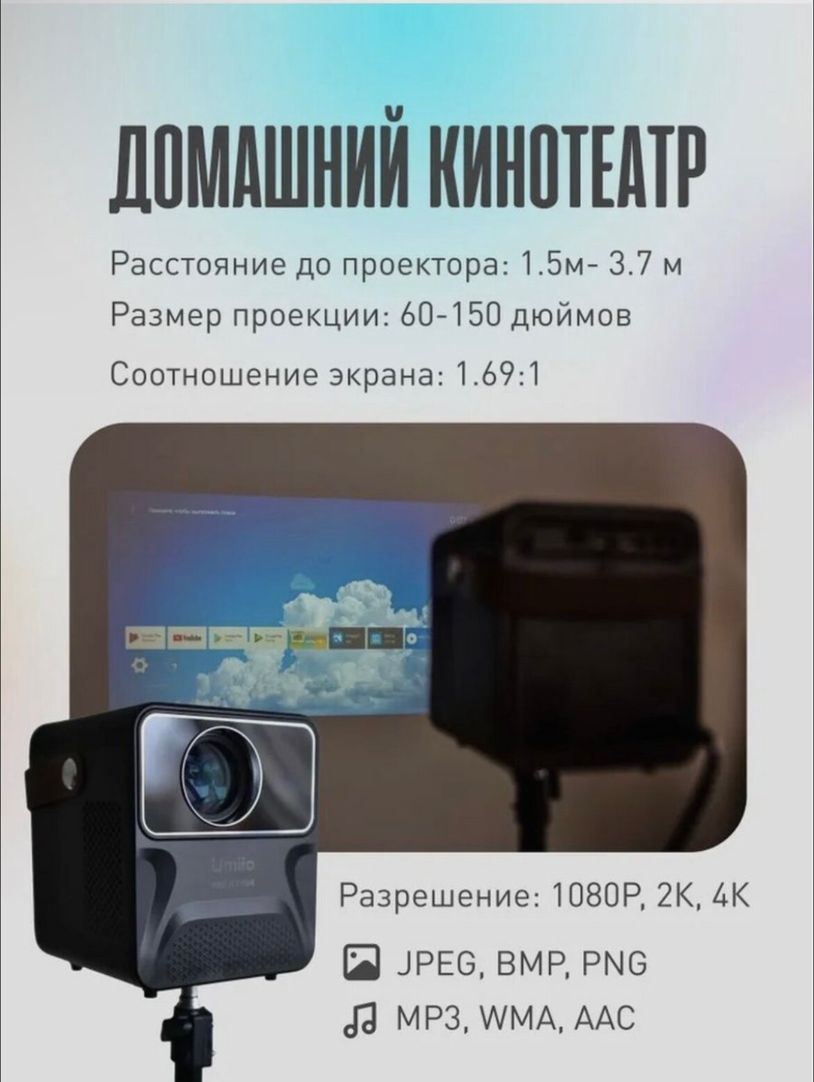 | Мин. проекционное расстояние | 1 м |