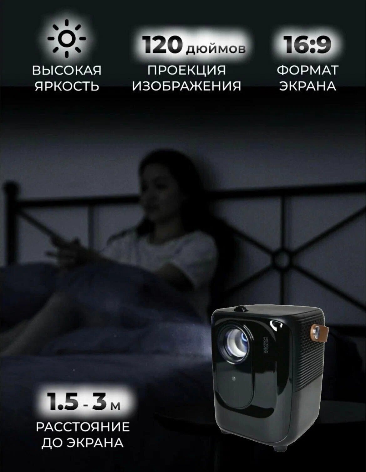 Мини проектор, мультимедийный / Портативный кинопроектор для просмотра фильмов / Переносной цифровой видеопроектор для дома, офиса, черный интересное: