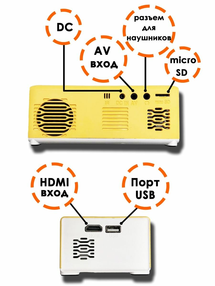 Мультимедийный мини-проектор для просмотра фильмов с поддержкой изображения FullHD, желтый интересное: