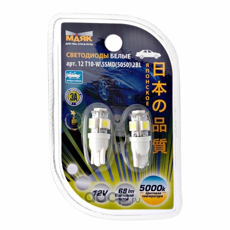 Ниже Вы можете прочитать отзывы на Маяк Лампа светодиодная 12 V T10-5 SMD (5050) белая повторит, габарит б/цок (к-т 2шт) маяк, ознакомится с подробными характеристиками, посмотреть интересные обзоры и фотографии на Маяк Лампа светодиодная 12 V T10-5 SMD (5050) белая повторит, габарит б/цок (к-т 2шт) маяк.