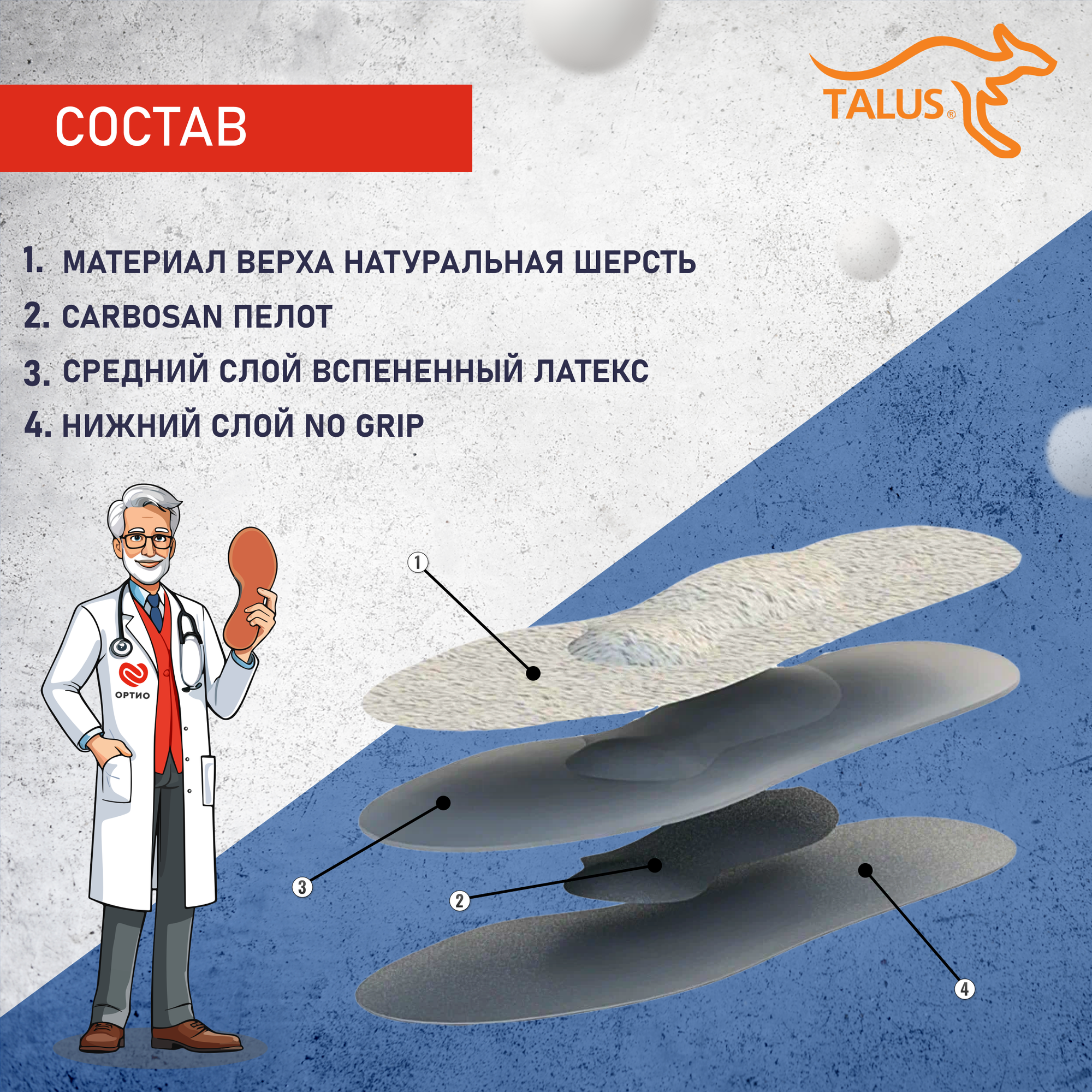 Стельки ортопедические Talus Зимний комфорт, шерсть, размер 45