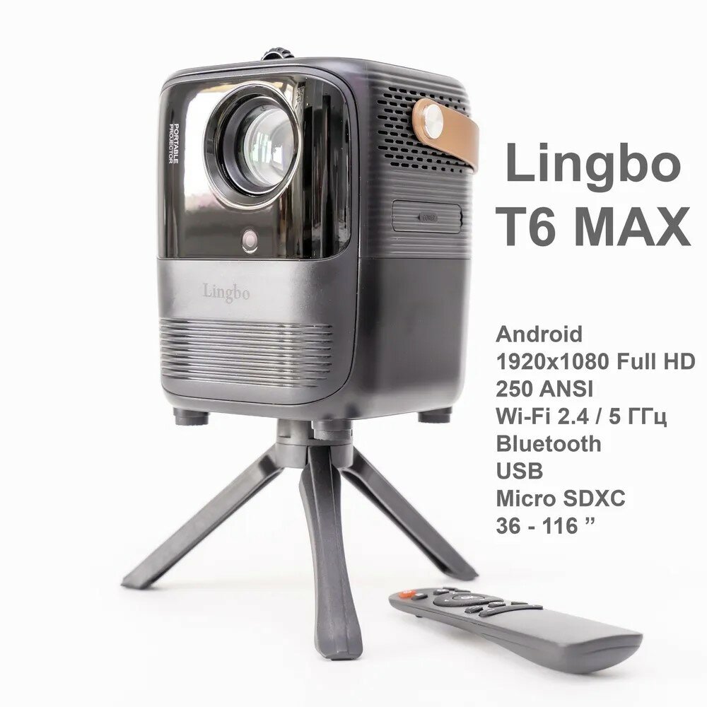 Портативный проектор Lingbo Projector T6 MAX 1920x1080 (Full HD), черный интересное: