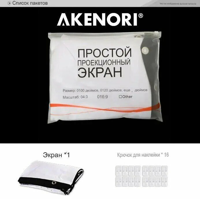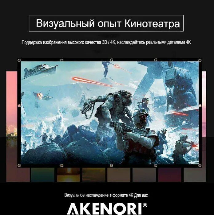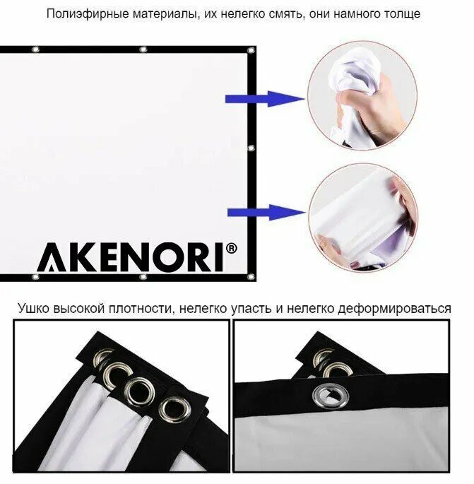 | Дополнительная информация | Наш экран Akenori отличается высоким качеством и доступной ценой; у него своя особенность, которую следует учесть при выборе; но в итоге, это прекрасное решение для тех, кому нужен переносной экран с четким изображением. |
