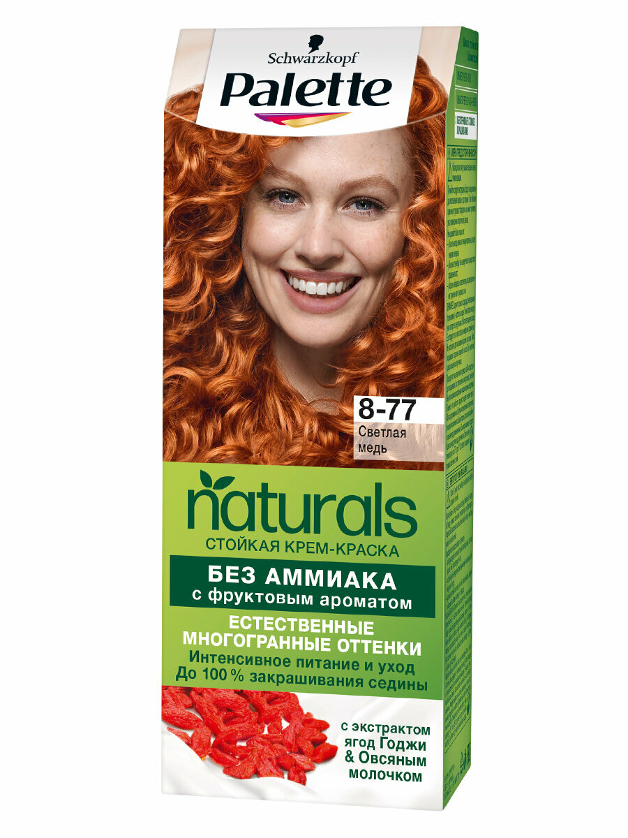 Палетт Naturia Стойкая крем-краска для волос, 8-77 светлая медь, 110 мл - 6 шт