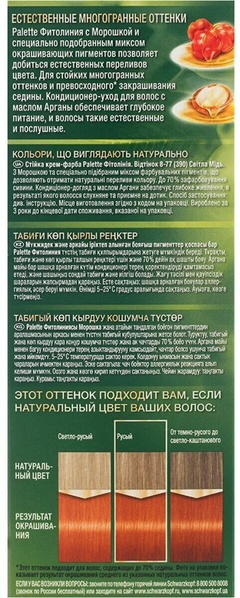 Palette Фитолиния Стойкая крем-краска для волос, 390 8-77 Светлая медь