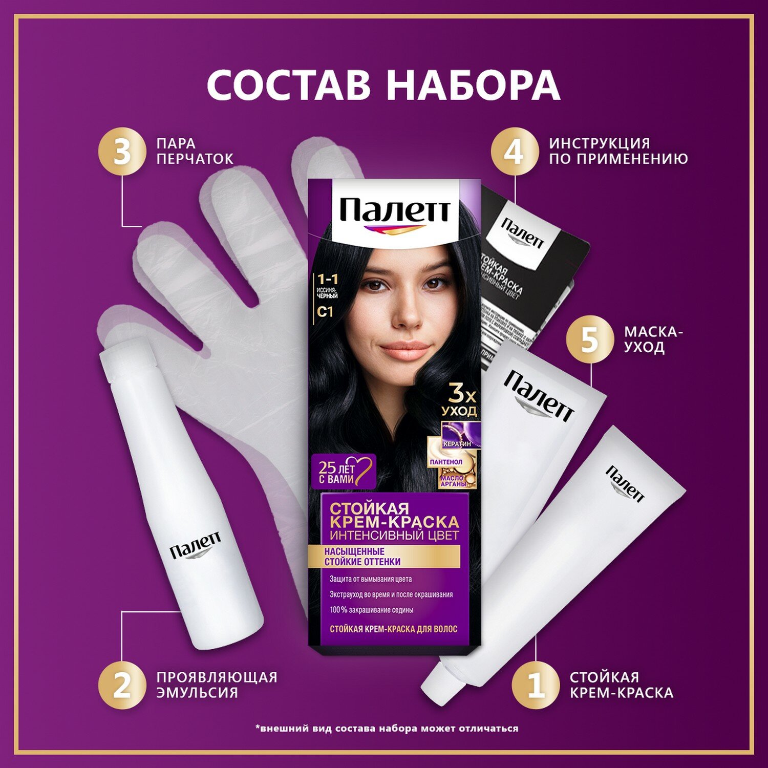 Palette Стойкая крем-краска C1 (1-1) Иссиня-черный, 110 мл