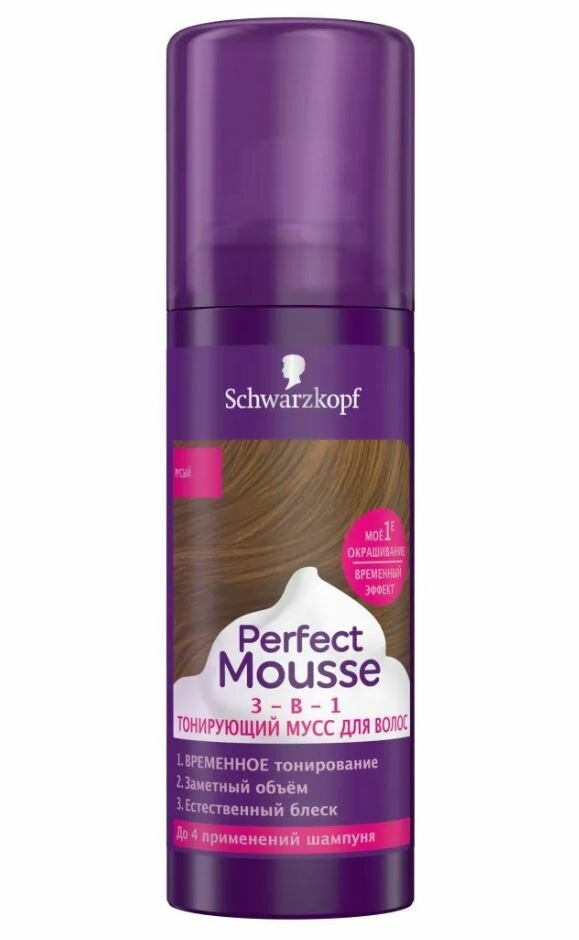 Perfect Mousse Тонирующий мусс 3-в-1, Русый, временное тонирование, 120 мл