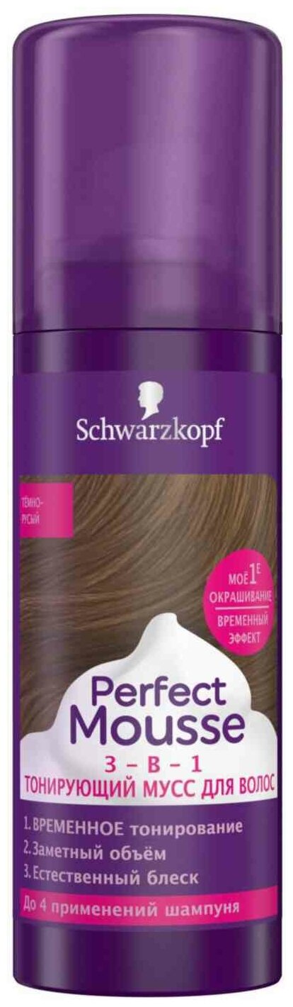 Купить Мусс для волос PERFECT MOUSSE 120мл Тонирующий мусс 3-в-1 Тёмно-русый