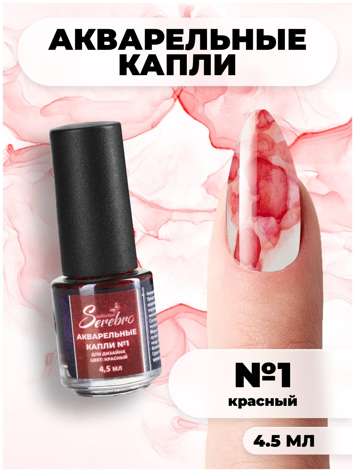 Акварельные капли для маникюра Serebro №1 для дизайна ногтей, красный, 4,5 мл