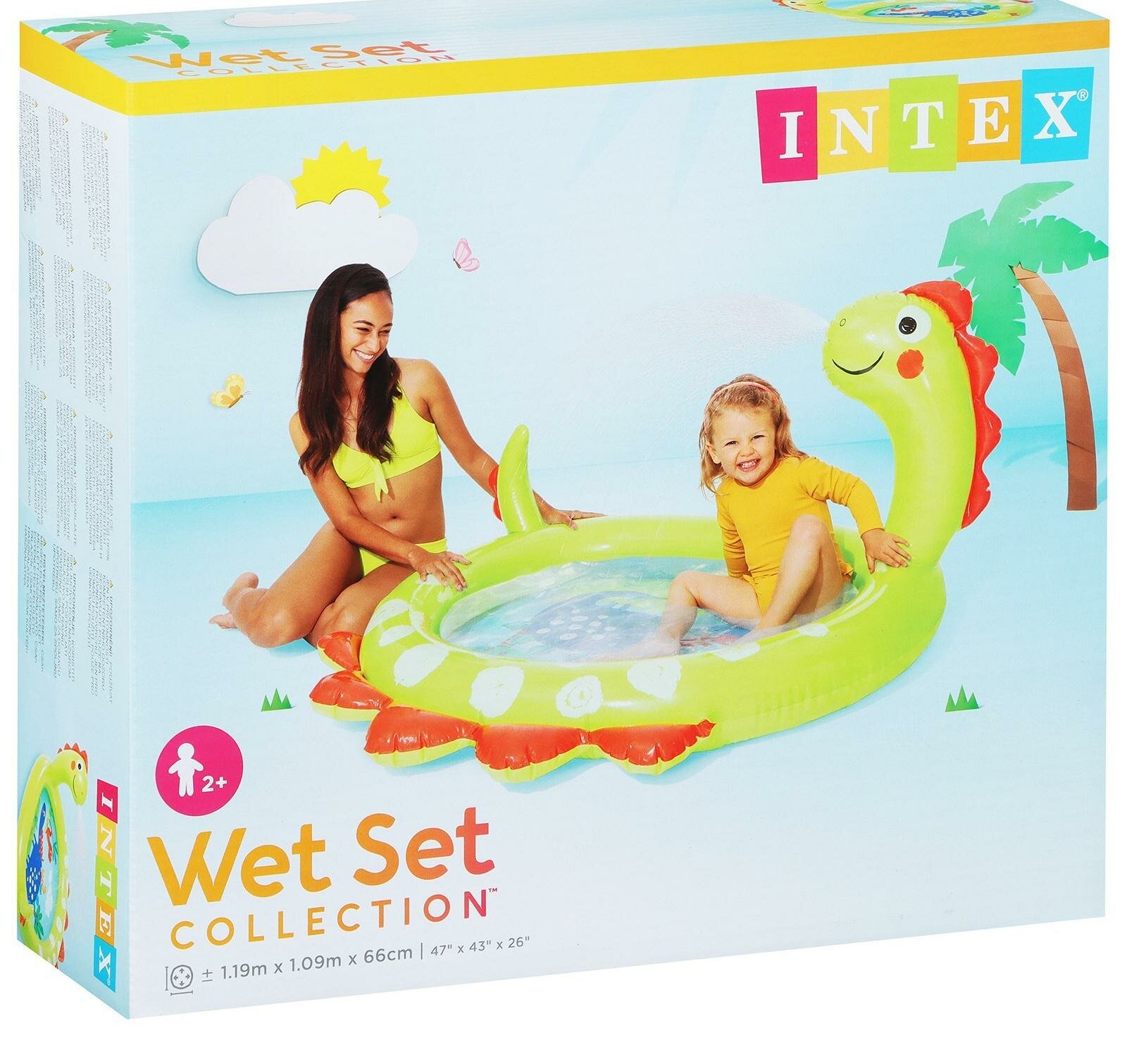 Бассейн надувной Intex, 119х109х66 см, Динозавр, 58437NP, 68 л, от 2 лет, с распылителем