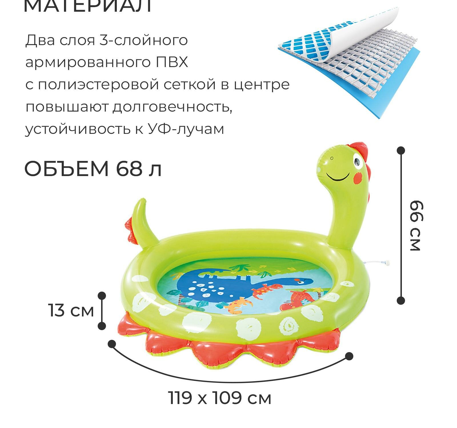 Ниже Вы можете прочитать отзывы на Бассейн надувной Intex 58437 Динозаврик 119х109х66 см, ознакомится с подробными характеристиками, посмотреть интересные обзоры и фотографии на Бассейн надувной Intex 58437 Динозаврик 119х109х66 см.