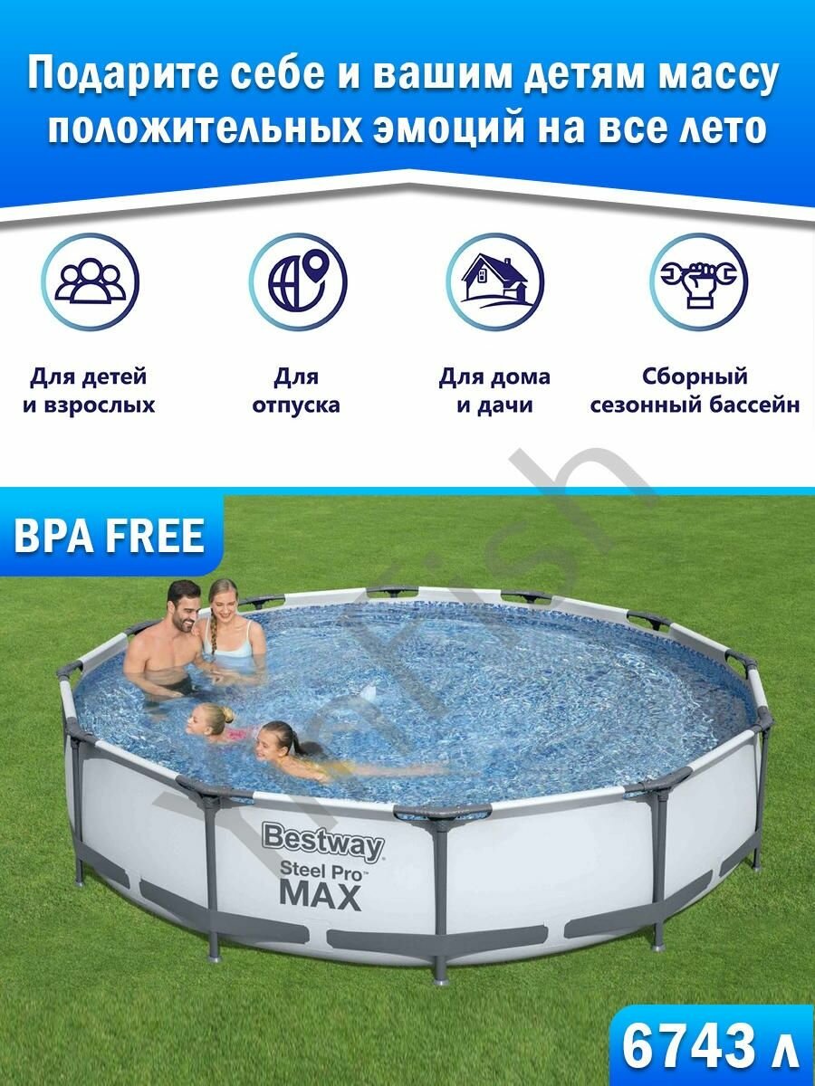 СохранитьБассейн каркасный Bestway Steel Pro Max, с фильтр-насосом, 366 x 76 см, 6473 л интересное: