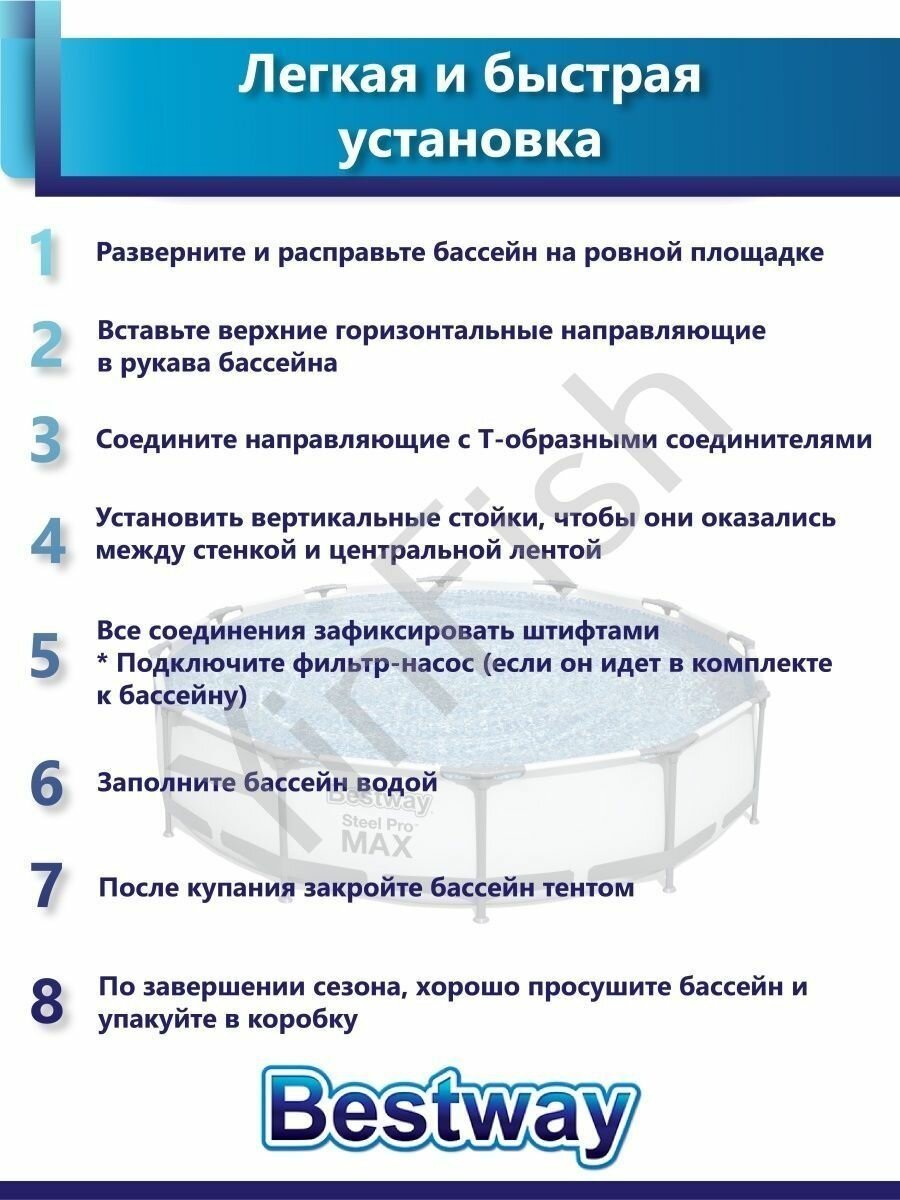56984 Каркасный бассейн Bestway Steel Pro Max 305х100см 6148л с фильтр-насосом 1249л/час