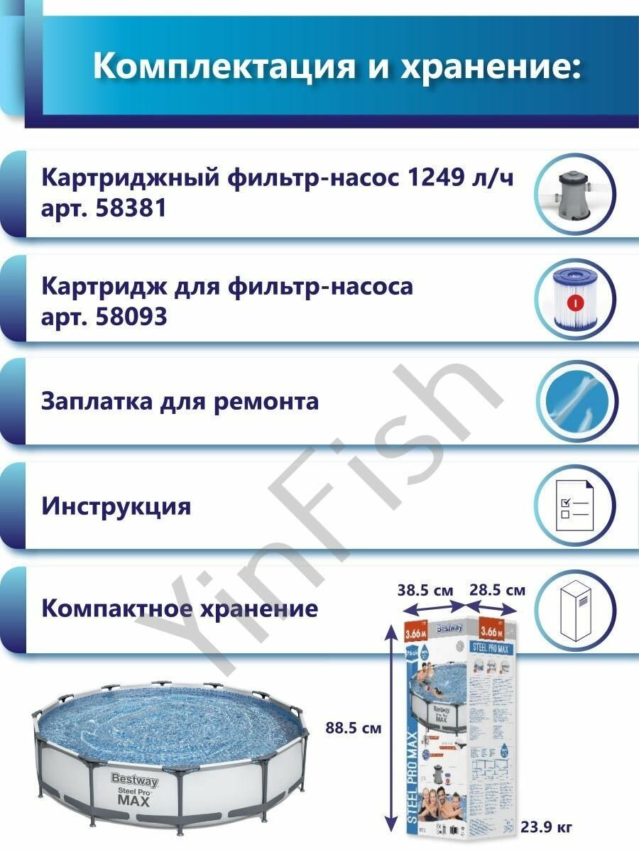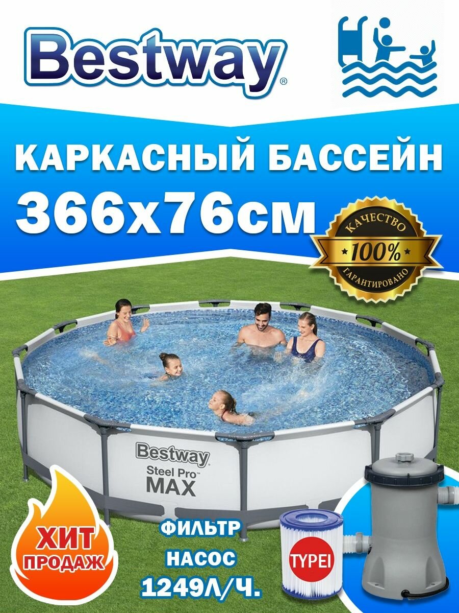 Бассейн каркасный Bestway Steel Pro MAX 56260, 366×100 см, фильтр-насос, круглый