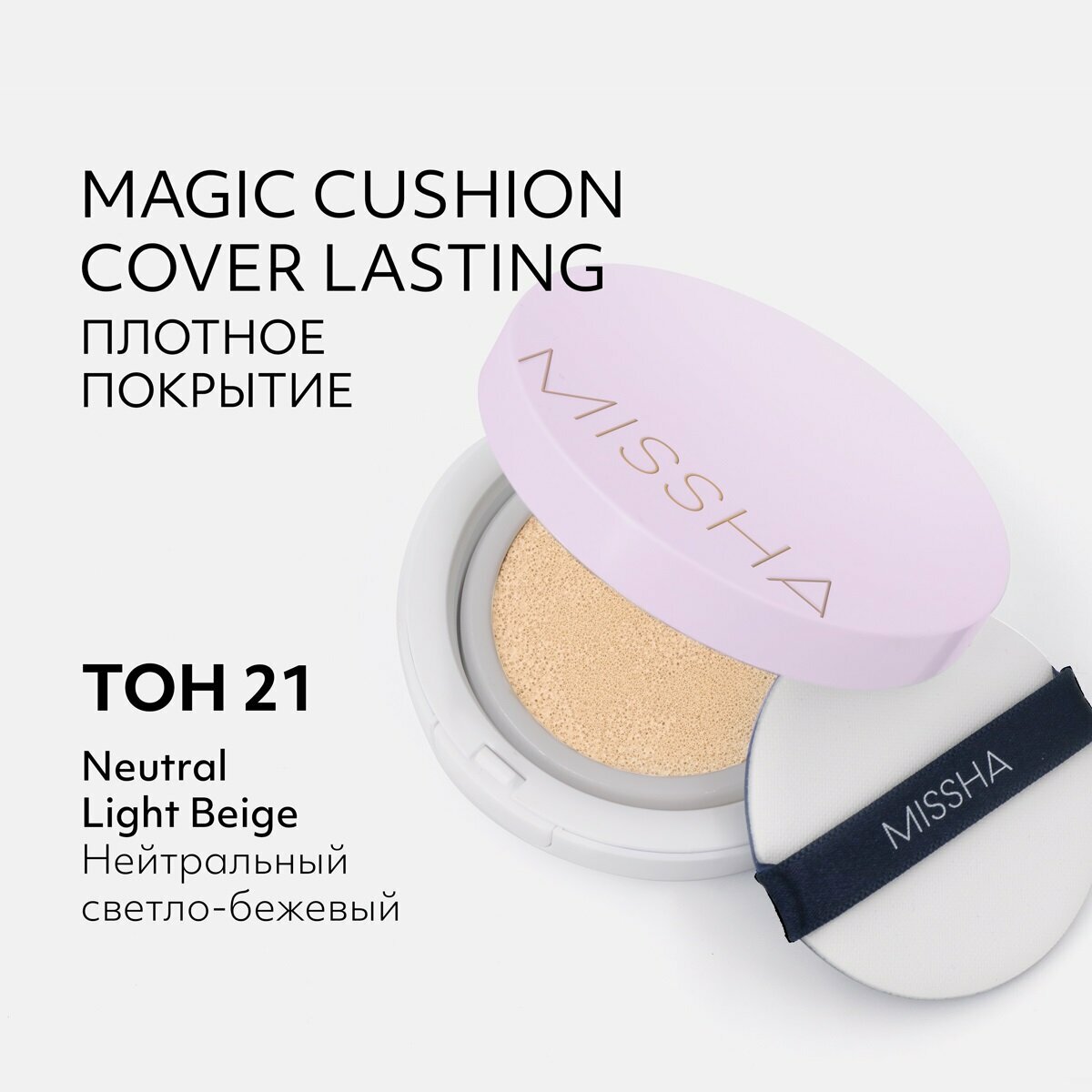 Купить Missha Тональный крем Magic Cushion Cover Lasting SPF50+/PA+++, 15 г, оттенок: 21 light beige