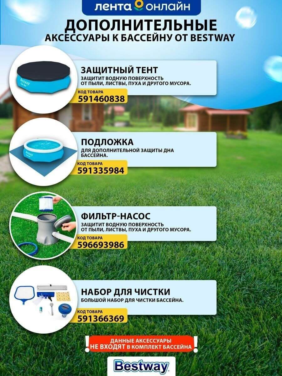 Круглый бассейн Fast Set 366х76 см, 5377 л, с фильтр-насосом, Bestway, артикул 57274 интересное: