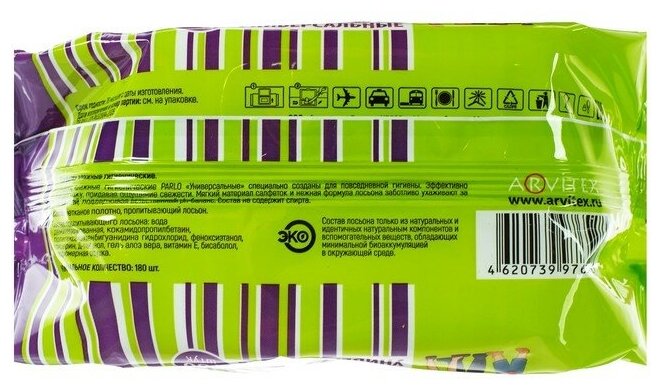 Купить Салфетки влажные универсальные для всей семьи с крышкой 180шт PARLO 4620739976528 (Артикул: 4100015444)