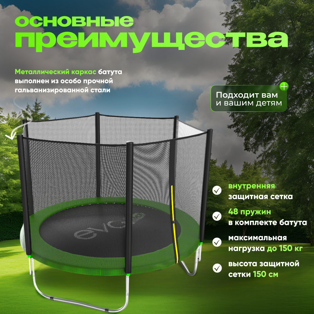 Батут EVO JUMP Standard 8ft, с внешней сеткой, диаметр 244 см, green