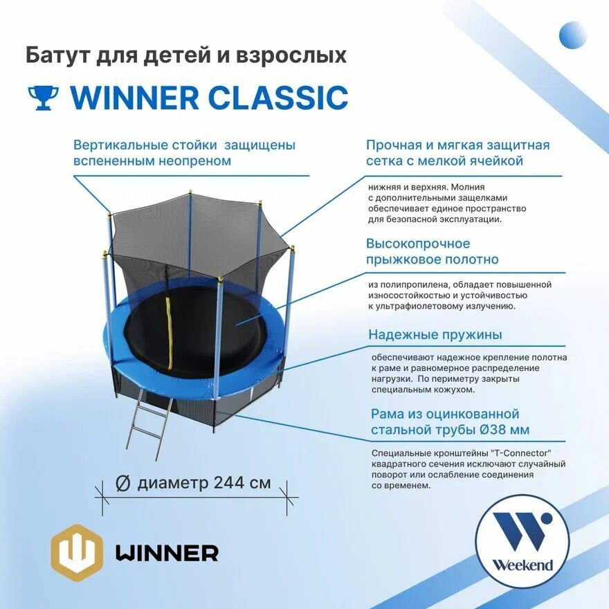 Каркасный батут с защитной сеткой "Winner 8 футов" 244 см, лестница в комплекте / батут для улицы интересное: