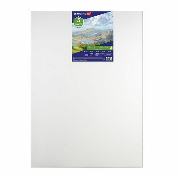 Brauberg Набор холстов на подрамнике, хлопок 100%, 5 штук (18×24, 24×30, 30×40, 40×50, 50×70 см), среднезернистый, BRAUBERG ART CLASSIC