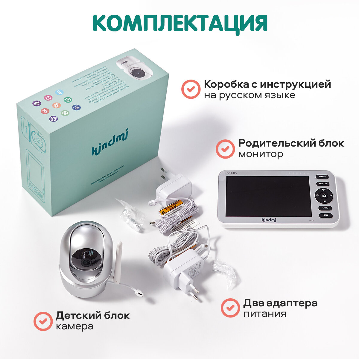 Купить Видеоняня беспроводная поворотная с большим монитором 5 дюймов Kindmi