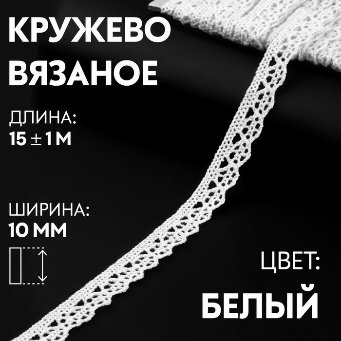 Кружево вязаное, 10 мм ? 15 1 м, цвет кипенно-белый Арт Узор 1354142 .