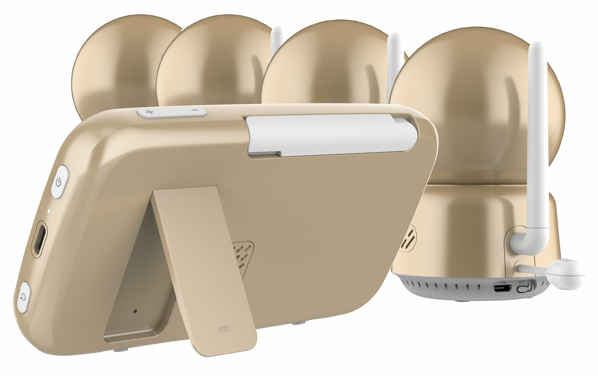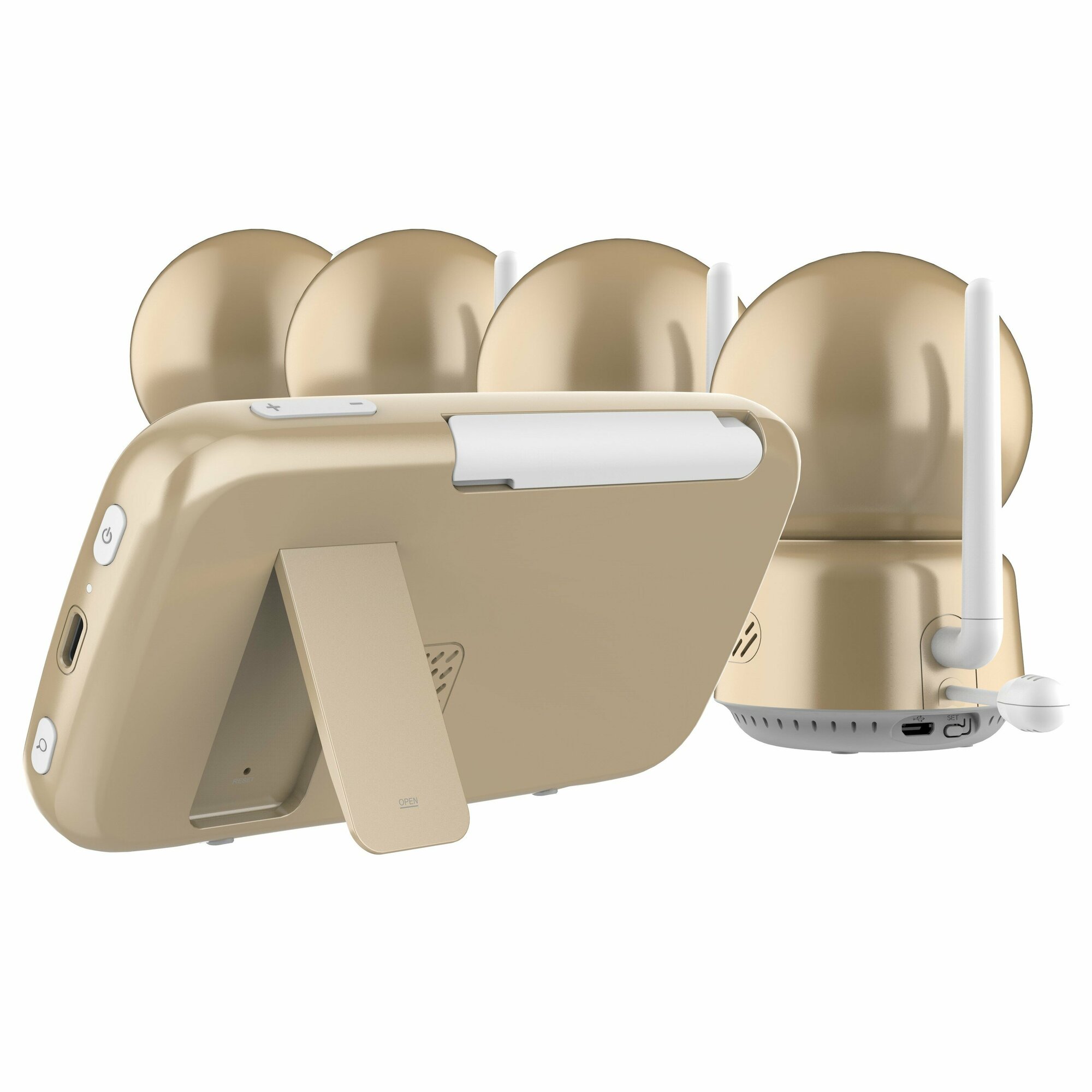 | Подробная комплектация | Камера (детский блок, 4 шт.), Монитор (родительский блок, 1 шт.), Адаптеры питания (5 шт.), Кабель питания для монитора USB – USB Type-C (1 шт.), Кабель питания для камеры USB – micro USB (4 шт.), Гибкое крепление с фиксатором для камеры (4 шт.), Инструкция (1 шт.). |