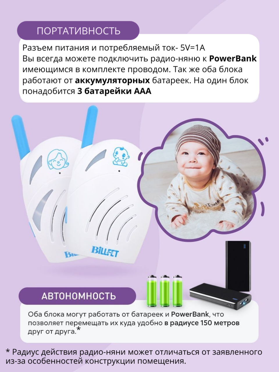 Радионяня беспроводная цифровая Baby monitor интересное: