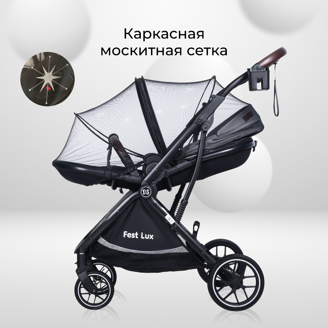 Прогулочная коляска детская с реверсивным блоком Farfello Fest Lux, черное перышко