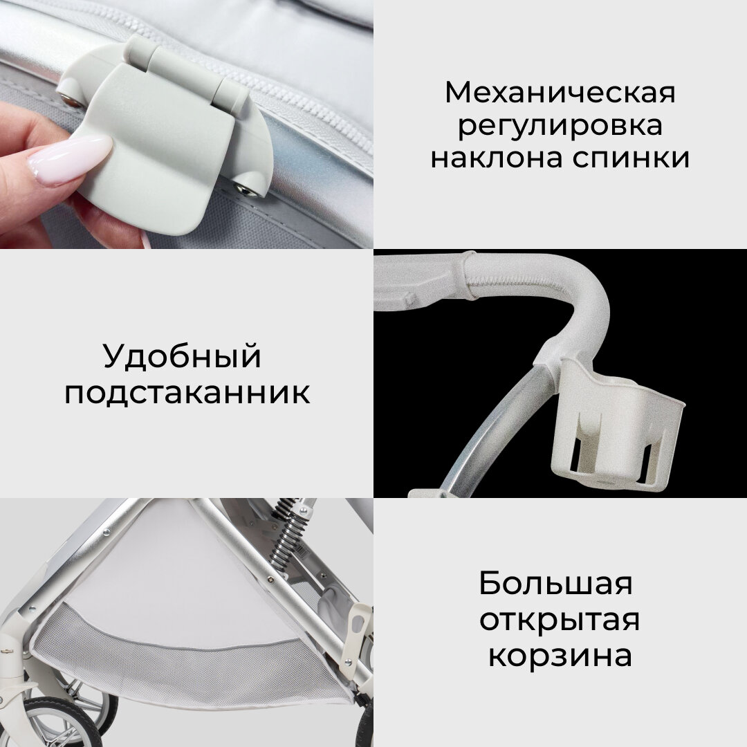 складывается реально компактно! лёгкая , спальное место большое, имеется мягкий матрасик не надо ничего подкладывать , сетка москитная красиво смотрится, подстаканник, сумка для коляски , колёса фиксируются , козырёк большой малыша не видно , плавно тихо опускается спинка без треска и других звуков, козырёк тоже тихо опускается (у моей коляски это всё делалось шумно). стильная