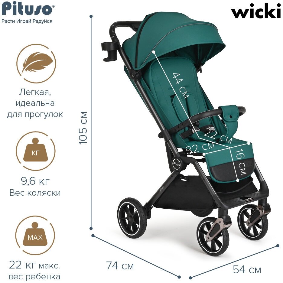 Прогулочная коляска Pituso Wicki Emerald/Изумруд интересное: