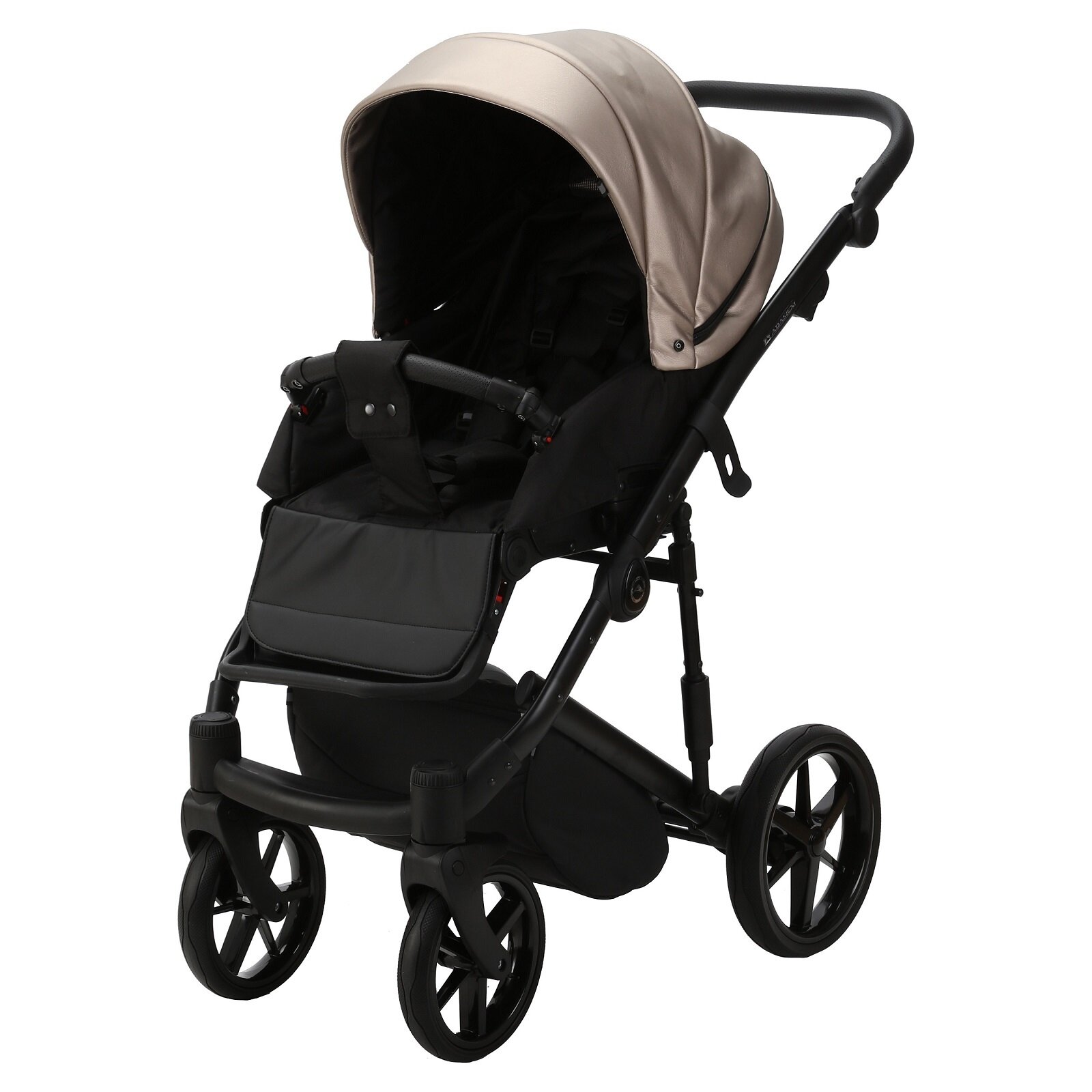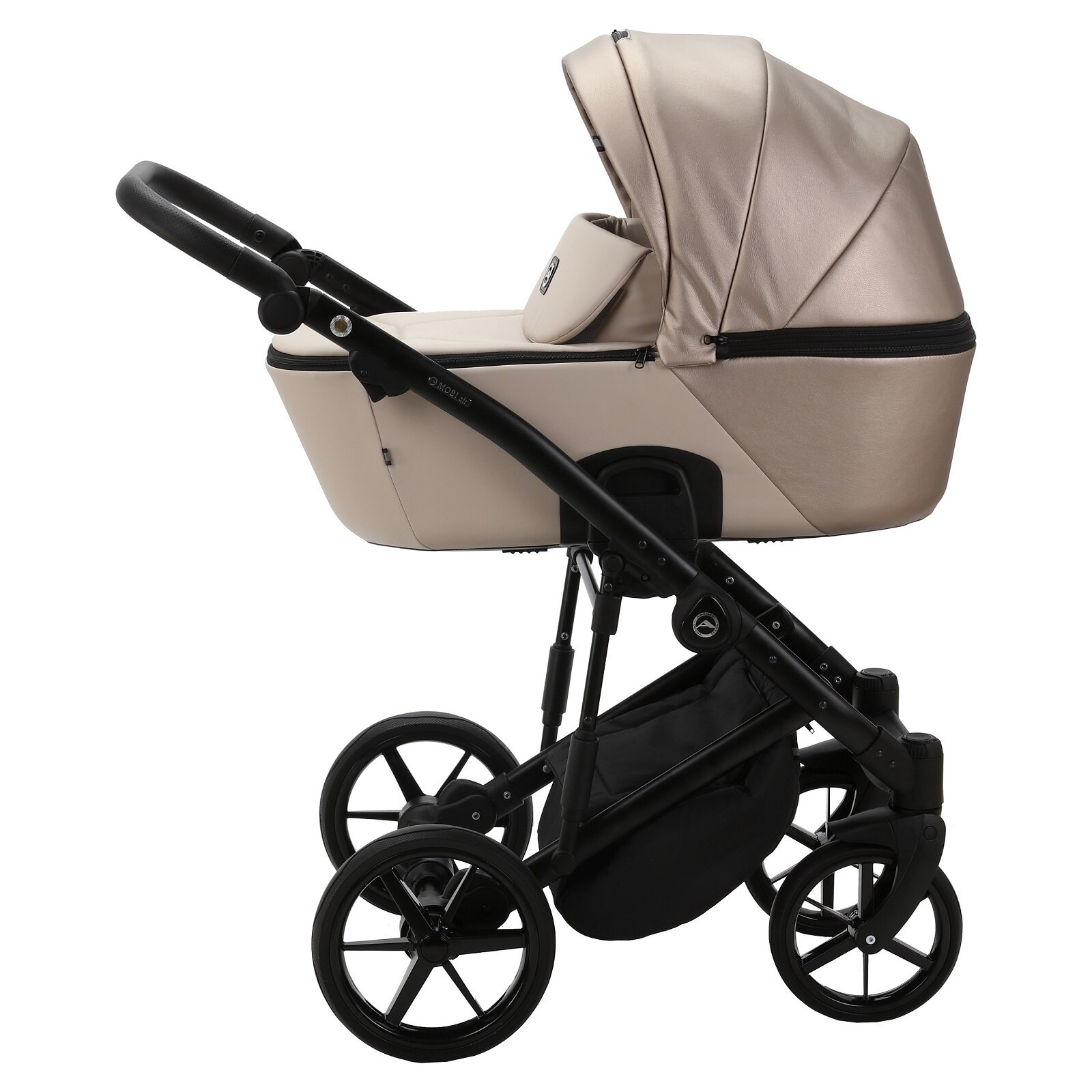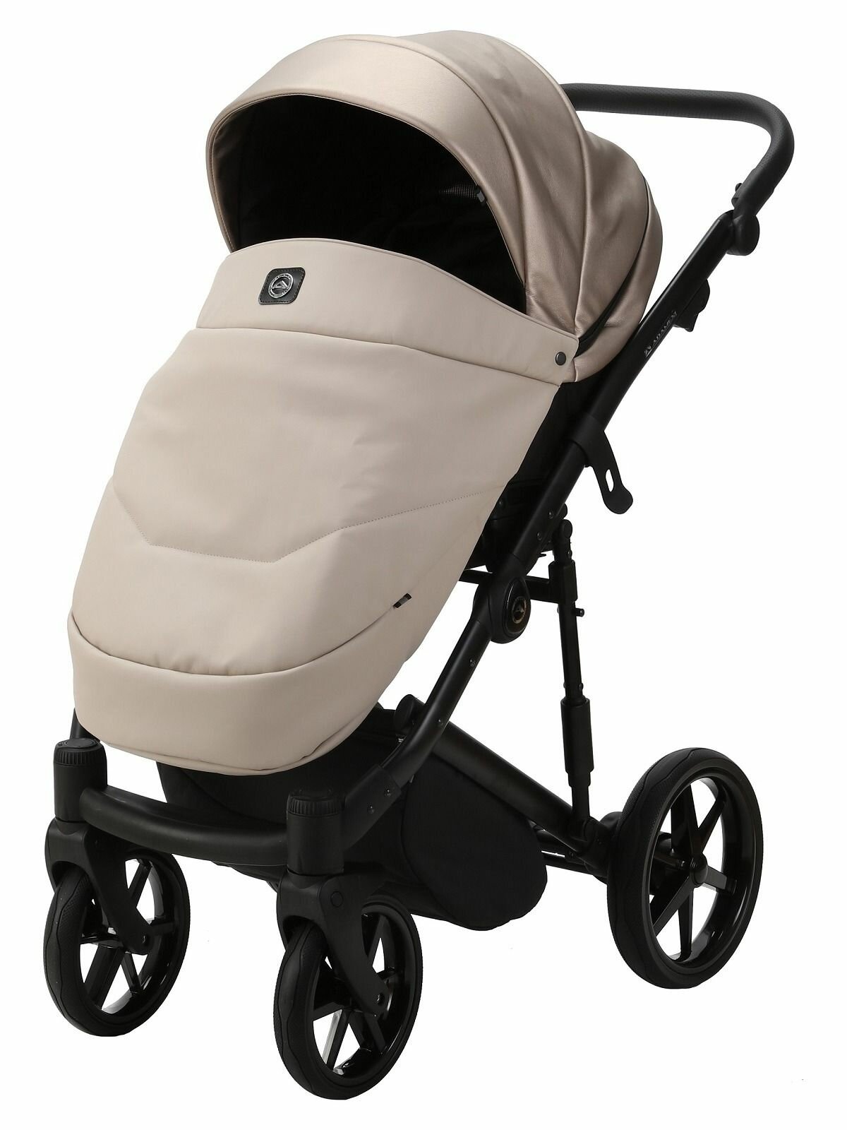 Коляска универсальная Adamex Mobi Deluxe 2 в 1, M-SD16 - Черная матовая, темно-бежевая перламутровая эко-кожа
